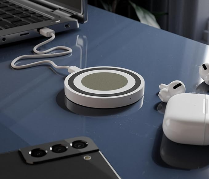 Introducing a stylish and functional wireless charging pad that combines vibrant colors with a modern design. This charging pad offers a sleek and efficient charging solution for your devices, infusing your workspace with a pop of personality.